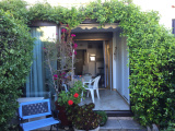 Coquet Studio en rez de jardin de 30m², tout équipé pour votre confort avec à l'extérieur son jardin ombragé et une place de parking privatif. Il comprend une pièce à vivre donnant sur la terrasse avec 1 clic-clac pour 2 personnes, TV écran plat, une cuisine ouverte équipée avec lave linge, un coin nuit avec 3 lits superposés, un grand placard, une salle d'eau et un wc.