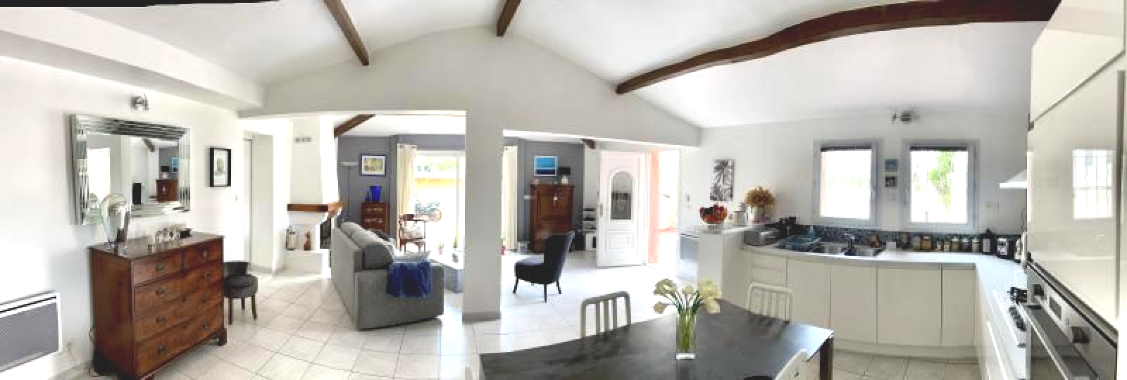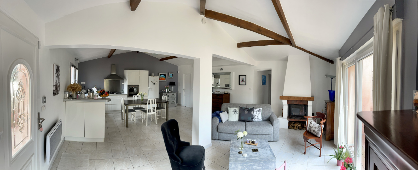 Villa élevée d'un étage d'une surface de 144 m² sur un terrain de 326m² composée:Au rez-de-chaussée d'un grand salon séjour de 48m² avec une cuisine ouverte et complètement aménagée. L'ensemble est ouvert sur une belle terrasse de 30 m² orientée sud, deux chambres dont une suite parentale de 25m², un cellier de 8 m² et un Wc.