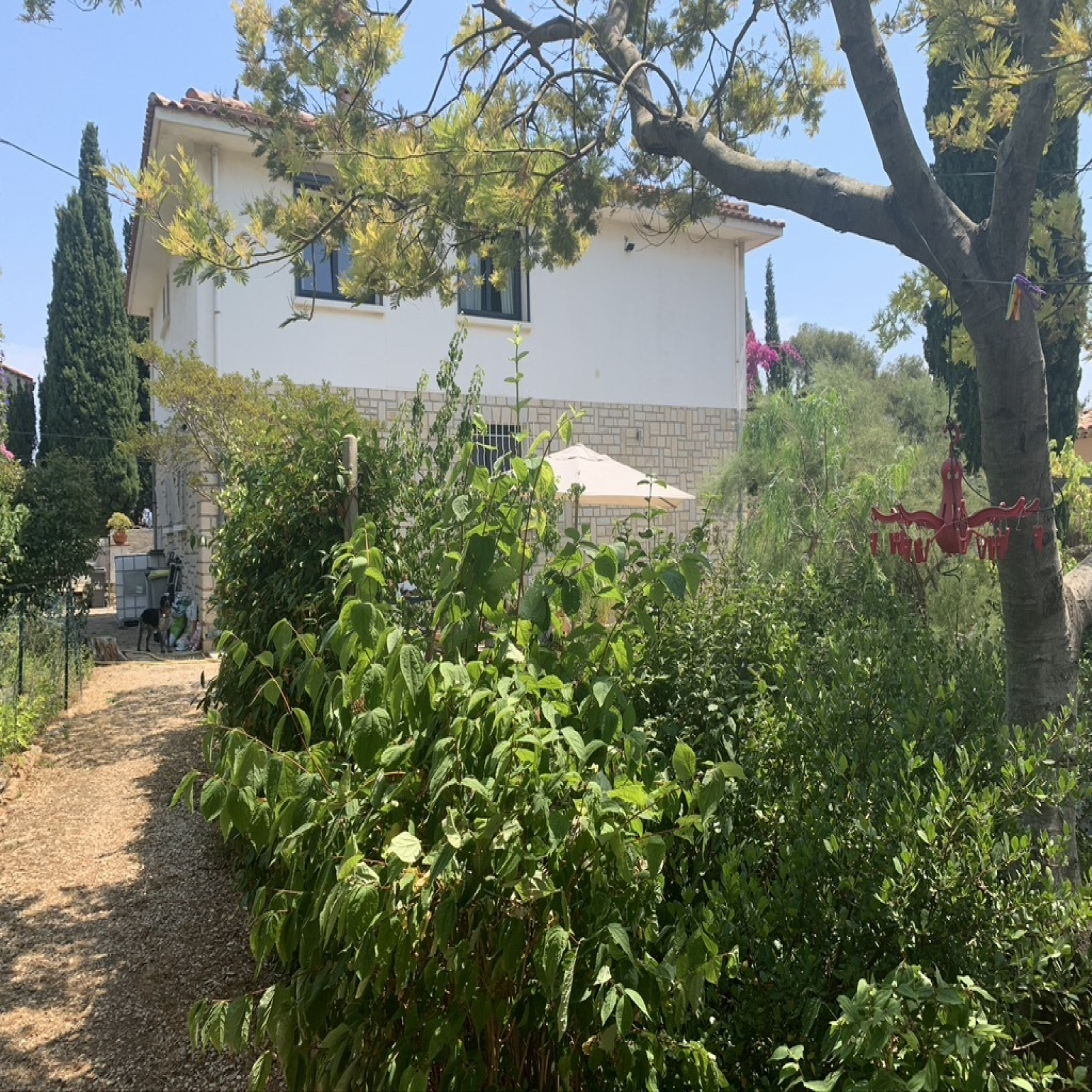 - L'ensemble sur un terrain piscinable plat et arboré avec un petit bassin et un arrosage automatique