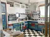- Au premier étage : une salle de séjour, une cuisine semi-ouverte et complètement aménagée, deux chambres, une salle de bain, un WC est une grande loggia avec une petite vue mer.
