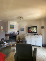 Composée à l'étage, d'un appartement du type 4 d'une surface de 80m² environ, un grand salon séjour avec une cheminée, une cuisine semi-ouverte et complètement aménagée, 3 chambres, une salle d'eau et un wc.