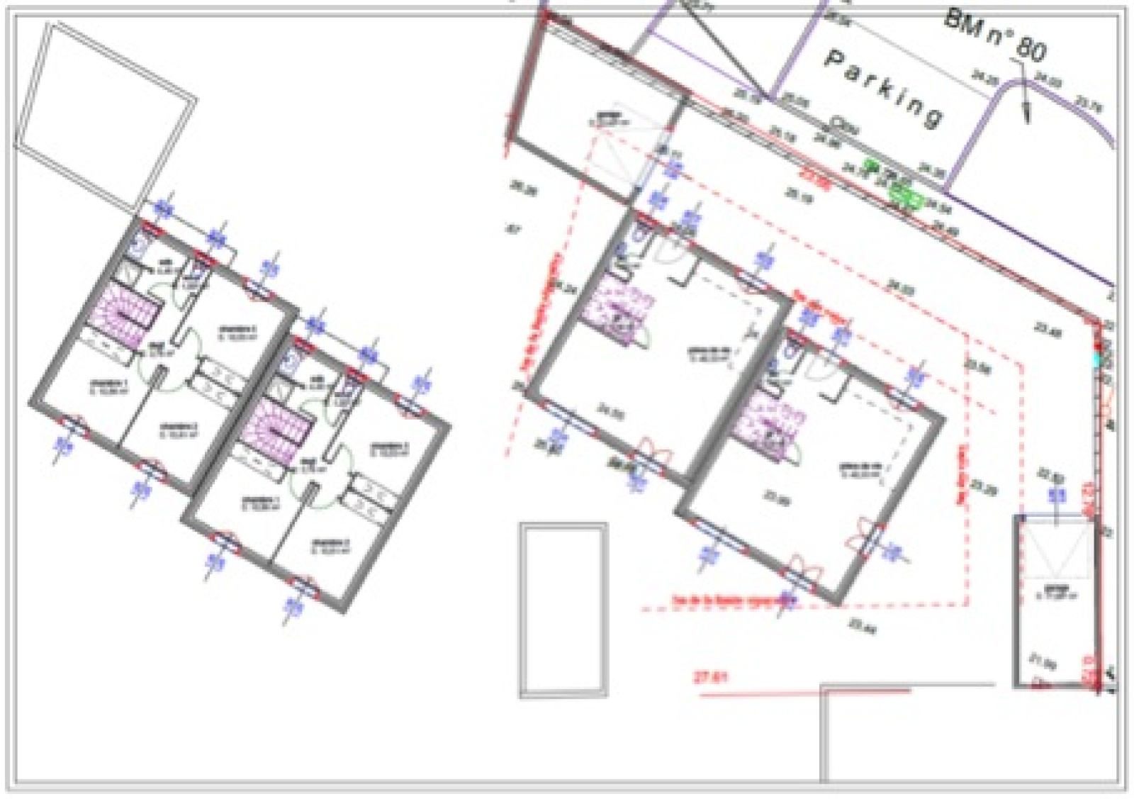 Le projet consiste à la construction d'une maison d'un étage sur plan avec son garage et sa place de parking privative. Sobre sur les façades, avec un caractère moderne et minimaliste avec son toit-terrasse, l'ensemble des maçonneries et clôtures ont un frottassé fin de teinte sable. Les fenêtres double vitrage sont en aluminium gris anthracite, les volets roulants sont électriques, poêle à granules et cumulus thermodynamique.