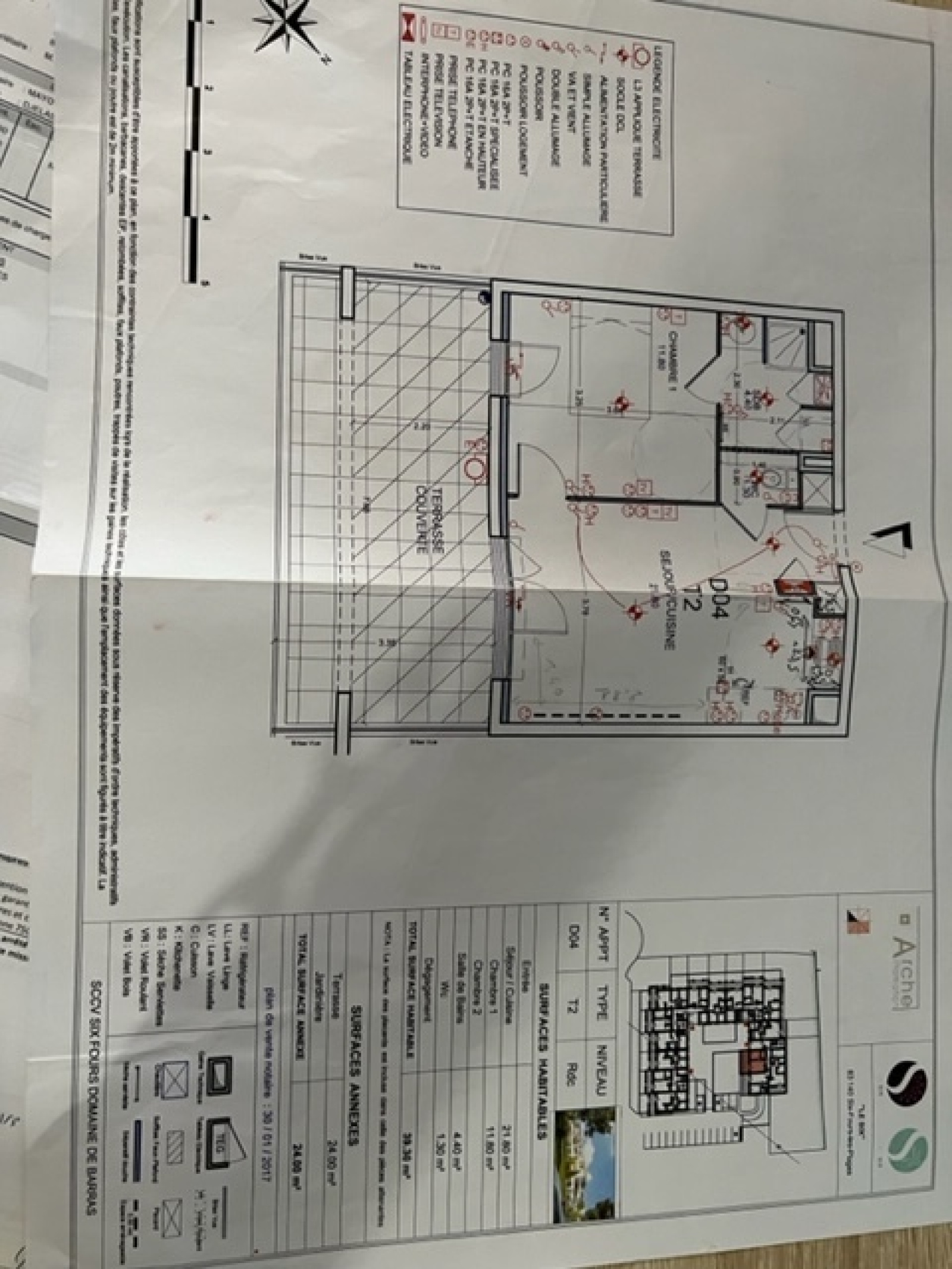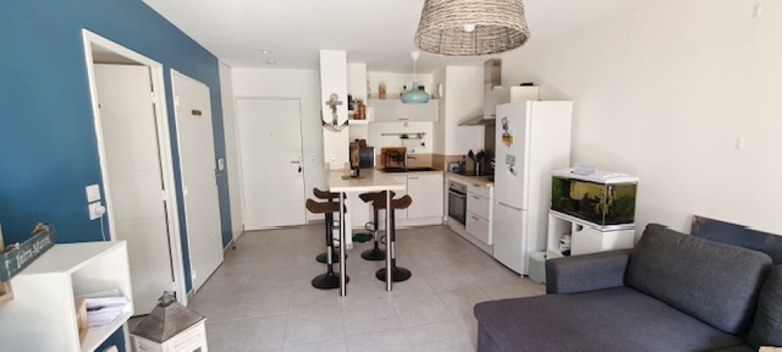 Appartement du type 2 d'une surface de 39,30 m² comprenant un salon séjour donnant sur une terrasse couverte de 24m² env, une cuisine ouverte et complètement aménagée, une chambres avec salle d'eau, un WC et un garage de 14,7m².